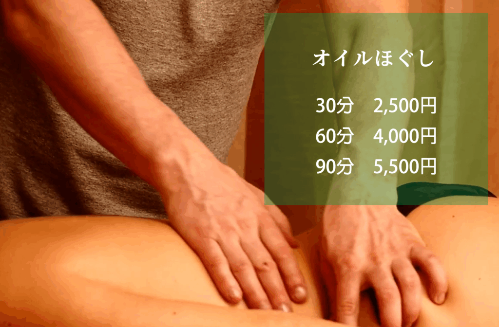 | 全身オイルほぐし | (60分) | 4,000円(税込) |